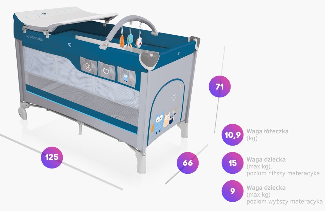 Baby Design DREAM - łóżeczko turystyczne, kojec PRZEWIJAK
