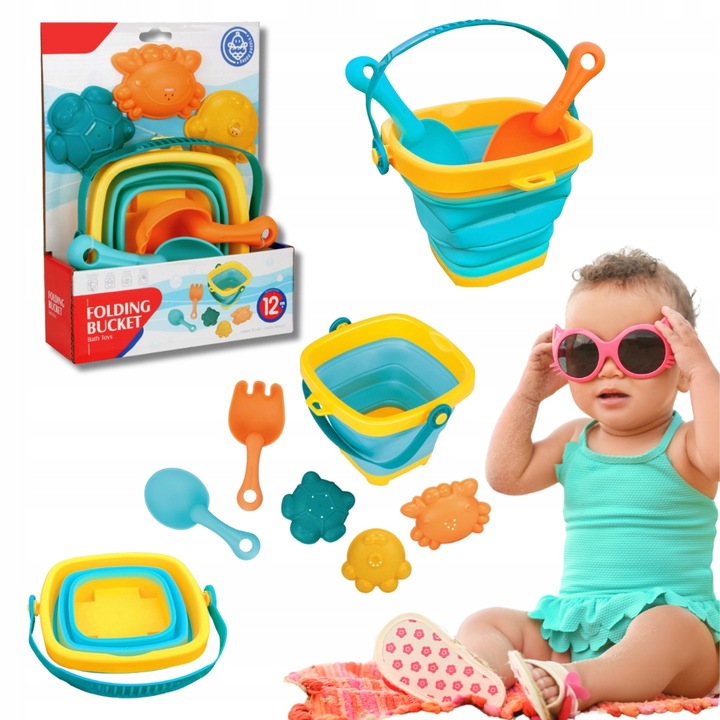 ZESTAW DO PIASKU I WODY – SKŁADANE WIADERKO + AKCESORIA BABY MIX