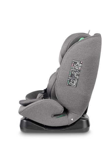 Fotelik oferuje uniwersalny montaż za pomocą pasów samochodowych, umożliwiając zarówno jazdę tyłem, jak i przodem do kierunku jazdy. Dzięki temu zapewnia elastyczność dopasowania do potrzeb dziecka oraz samochodu, gwarantując wygodę i bezpieczeństwo na każdym etapie użytkowania. 5-stopniowa regulacja pochylenia z wbudowaną miarką ułatwia precyzyjne określenie wybranego stopnia nachylenia i zapewnia powtarzalność ustawień.