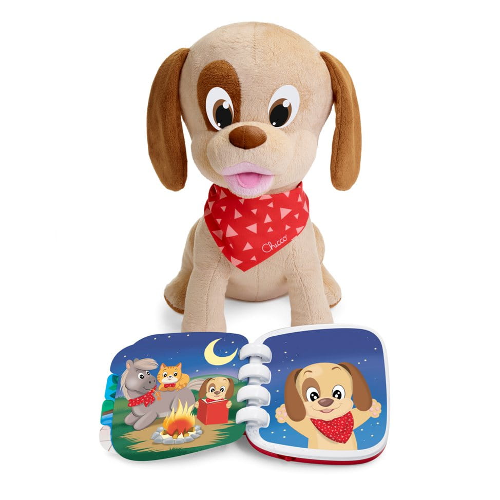 Interaktywny Piesek Lucky to pierwsza interaktywna pluszowa zabawka Chicco, która opowiada historie, komunikując się z najmłodszymi dzięki inteligentnym i zaskakującym funkcjom! Piesek szczeka z radości, gdy pogłaszcze się go po głowie i opowiada historię, gdy dziecko przewraca strony książeczki.