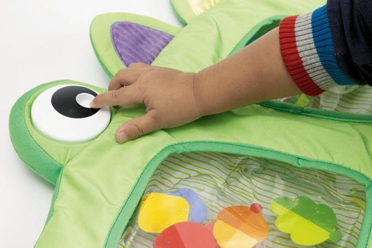 Dzięki napełnionej wodą i napompowanej powietrzem wkładce, mata dostarcza dziecku różnorodnych bodźców dotykowych.