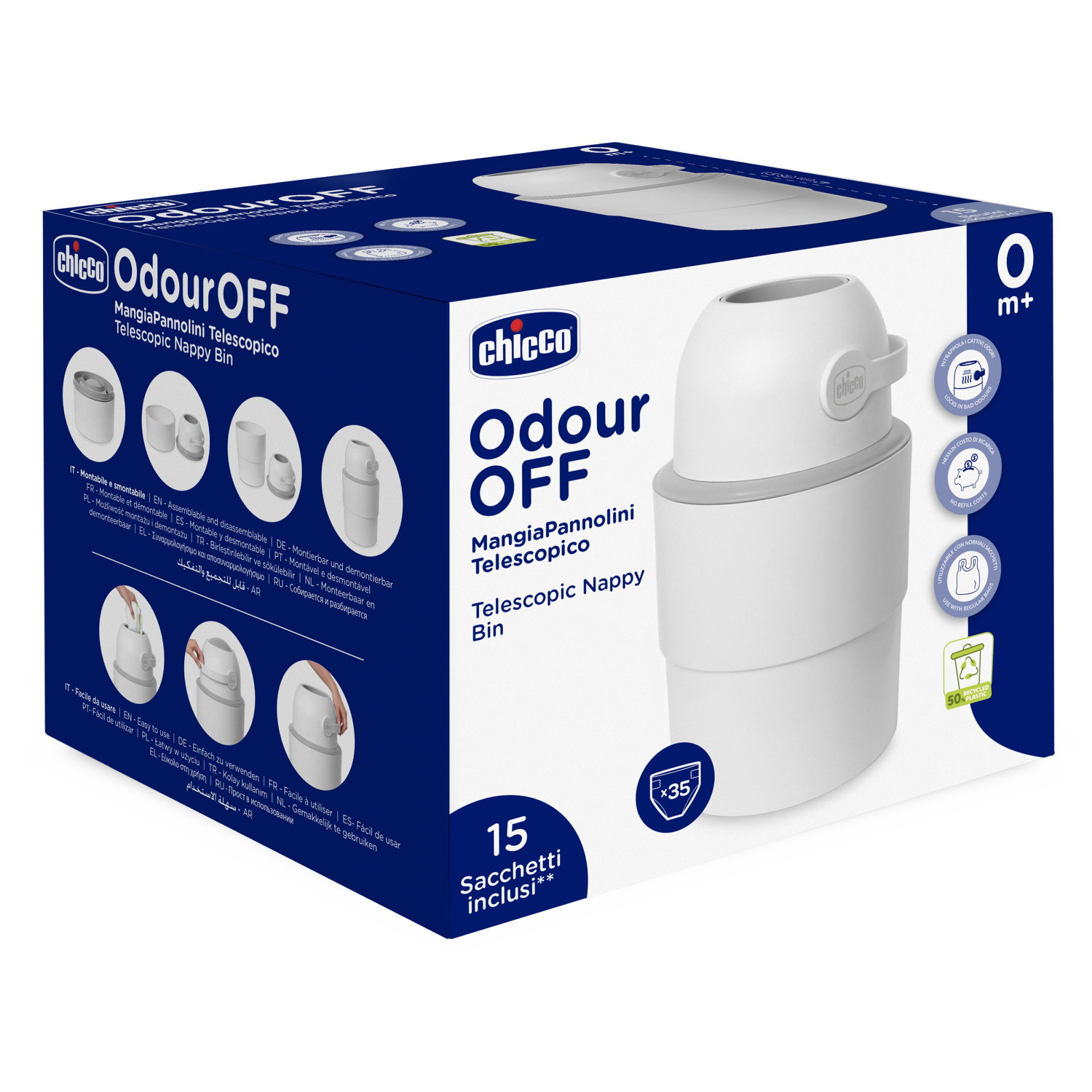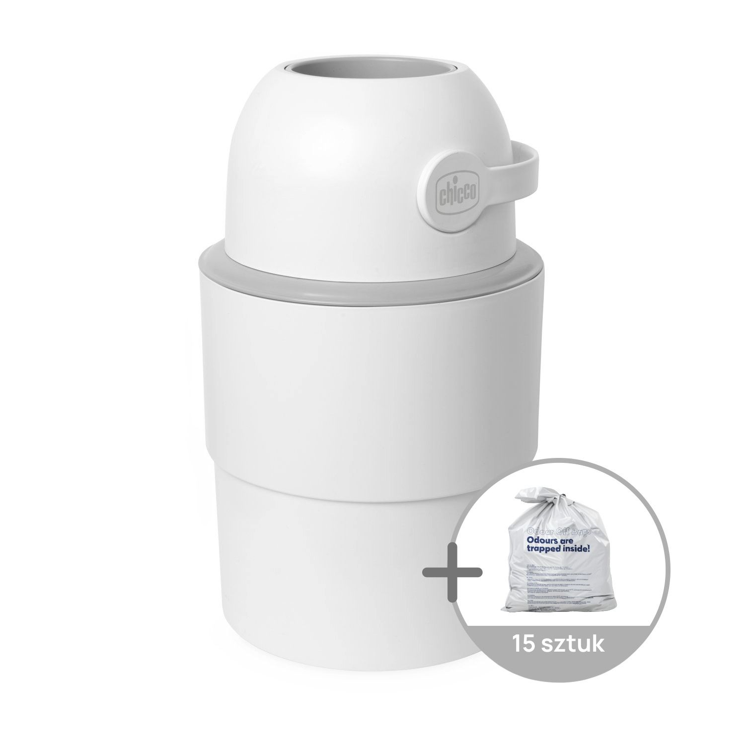• Skuteczna neutralizacja zapachów – system antyzapachowy CHICCO skutecznie zatrzymuje nieprzyjemne aromaty wewnątrz pojemnika.