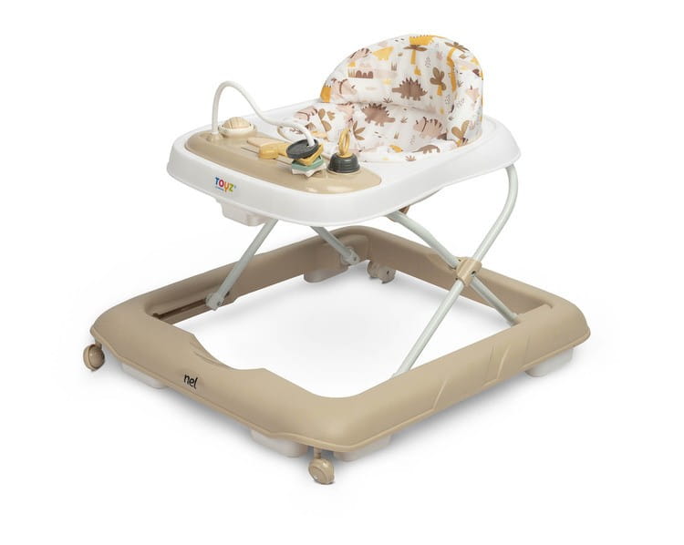 Nel to przystępny cenowo i stylowy chodzik dla maluchów marki Toyz. Wyróżnia go elegancka kolorystyka i wygoda użytkowania. Specjalna konstrukcja umożliwia dopasowanie położenia siedziska do wysokości malucha – tak, by stópki swobodnie dotykały podłoża. Wyposażony jest w dźwiękowy panel zasilany bateriami i manualne zabawki, które zapewniają dobrą zabawę.