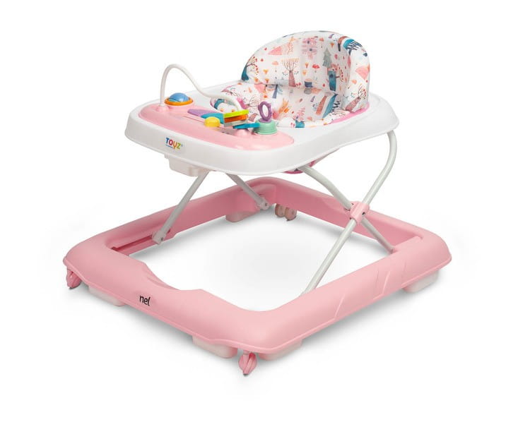 Nel to przystępny cenowo i stylowy chodzik dla maluchów marki Toyz. Wyróżnia go elegancka kolorystyka i wygoda użytkowania. Specjalna konstrukcja umożliwia dopasowanie położenia siedziska do wysokości malucha – tak, by stópki swobodnie dotykały podłoża. Wyposażony jest w dźwiękowy panel zasilany bateriami i manualne zabawki, które zapewniają dobrą zabawę.
