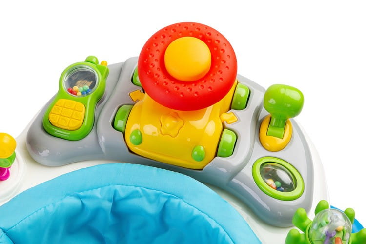 - edukacyjny panel – zawiera szereg niespodzianek czekających na małych odkrywców: grzechotki, światełka, piszczki, melodyjki, przyciski i masę innych ruchomych elementów