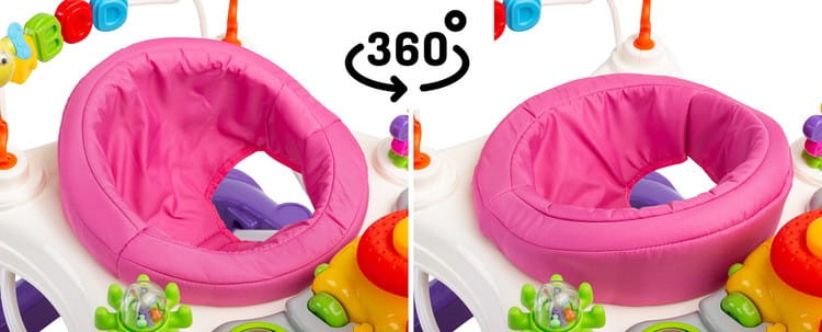 - obrotowe siedzisko 360° – pozwala na śledzenie świata wokół maleństwa oraz gruntowne poznanie zabawek z tyłu