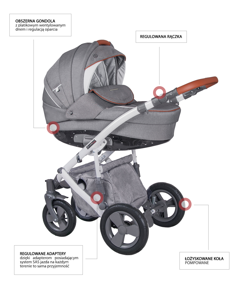 w opcji 2w1 z możliwością montażu fotelika samochodowego jako opcja 3w1