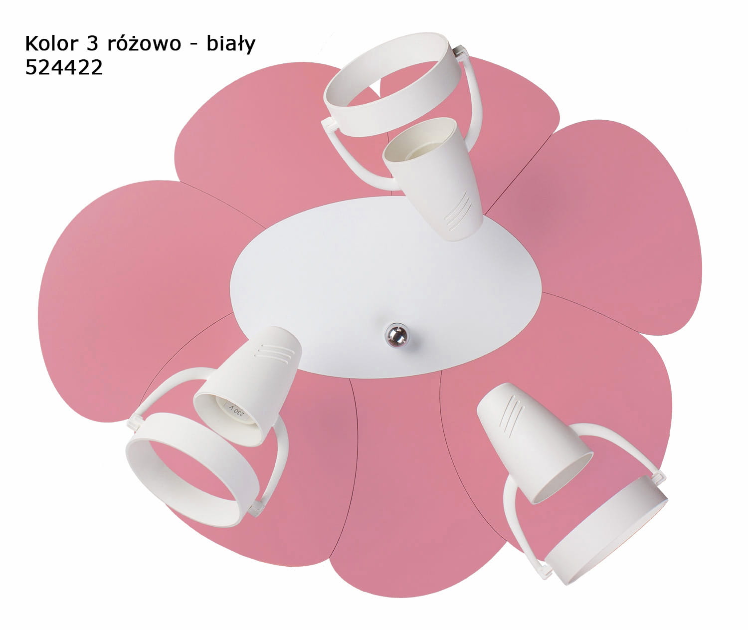 Lampa plafon płatek - wykonana z wysokiej jakości produktów w kolorze różowym. Dzięki trzem punktom światła, zawieszona w pokoju dziecięcym zapewni Twojemu dziecku odpowiednie oświetlenie w czasie zabawy jak i nauki. Jej atrakcyjna forma i kolorystyka rozwinie wyobraźnię, oraz sprawi, że twoja pociecha będzie zachwycona wystrojem swojego pokoju.