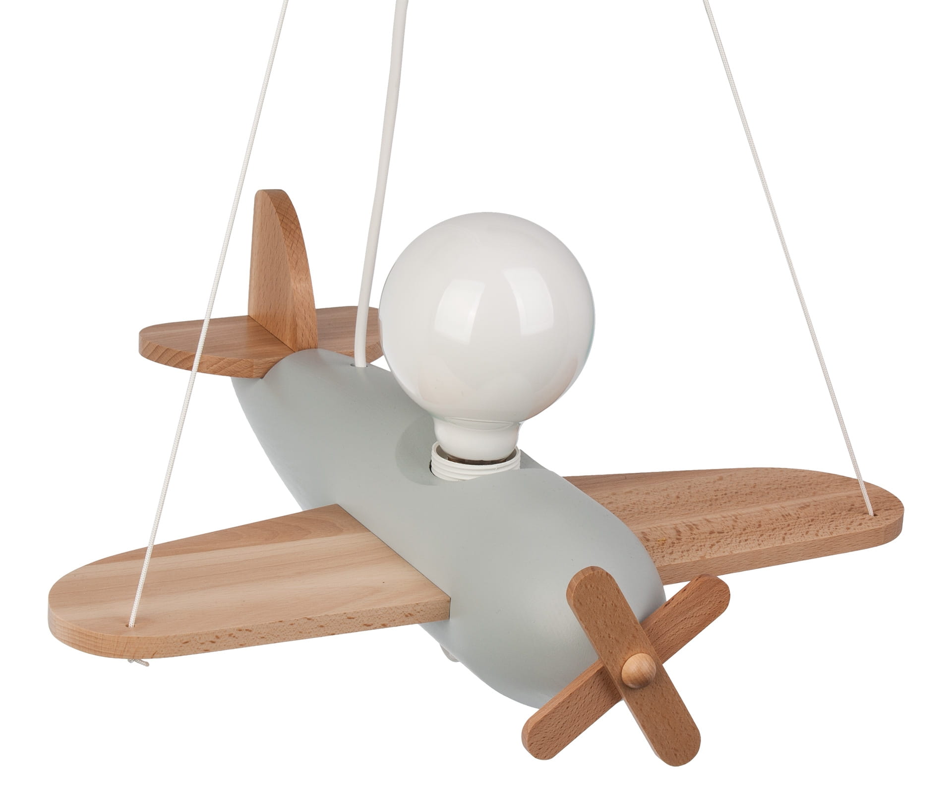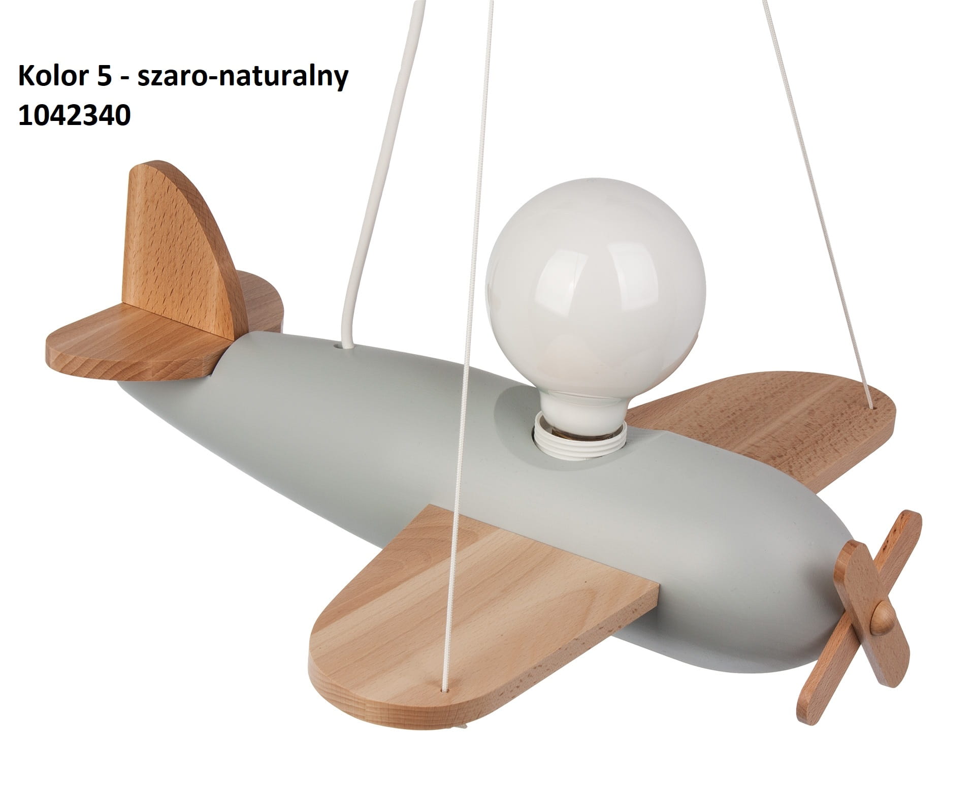 Wisząca lampa Samolot Clipper wykonana z drewna, zawieszona w pokoju dziecięcym, zapewni odpowiednie oświetlenie w czasie zabawy, jak i nauki. Atrakcyjna forma i kolorystyka rozwinie wyobraźnie Twojej pociechy!!