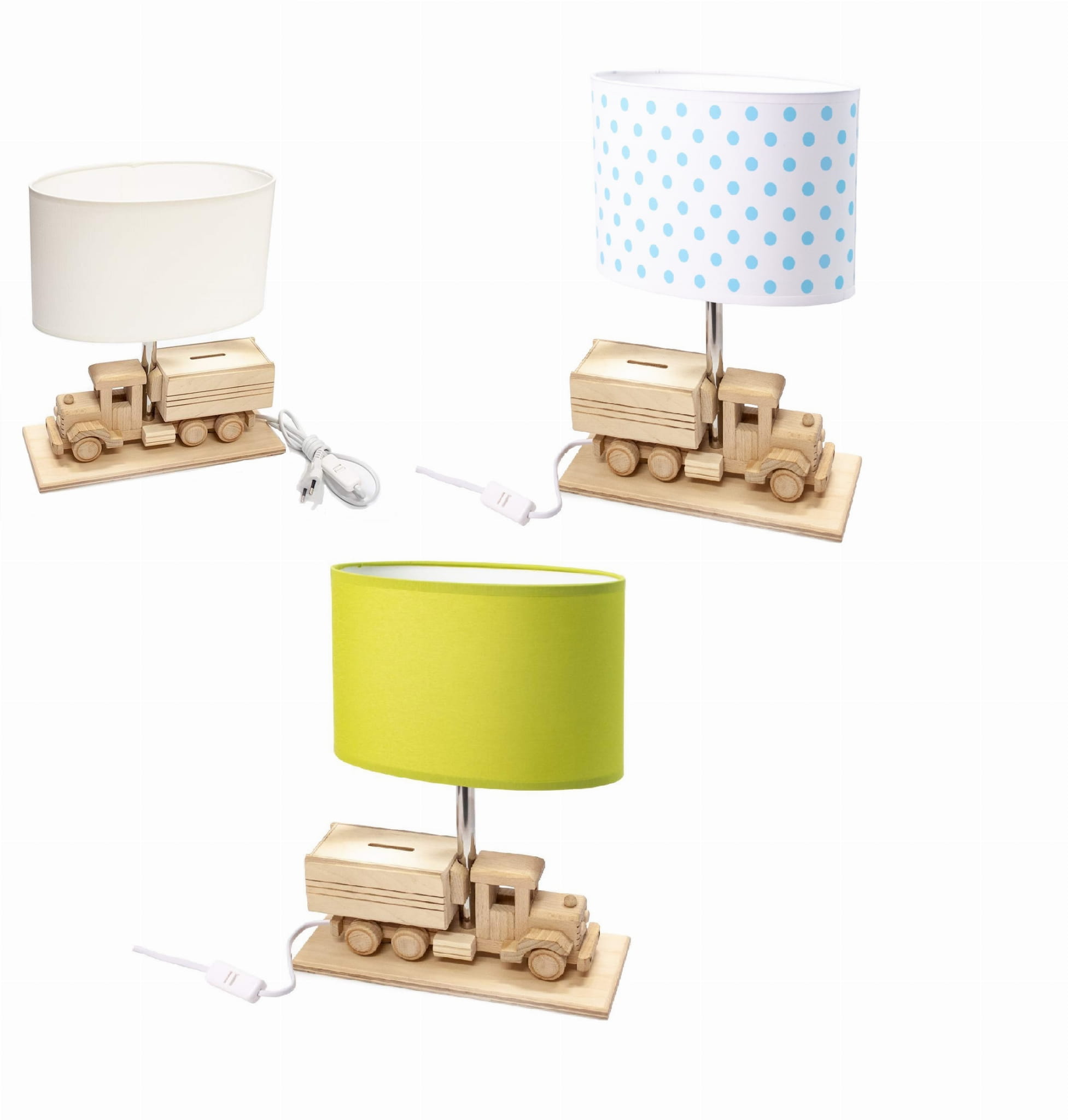 Stołowa lampka ciężarówka wykonana z najlepszej jakości certyfikowanego drewna, swoją prostotą i klasycznym wyglądem idealnie odnajdzie zastosowanie w pokoju dziecięcym na biurku, lub stoliku nocnym, a wzór autka trafi w gusta miłośników pojazdów. Ponadto, dodatkowym atutem lampy jest umieszczona skarbonka, dzięki której dziecko będzie miało większą uciechę ! Jeśli właśnie szukasz niesamowitego prezentu dla swojego dziecka, ta lampa jest właśnie dla Ciebie!