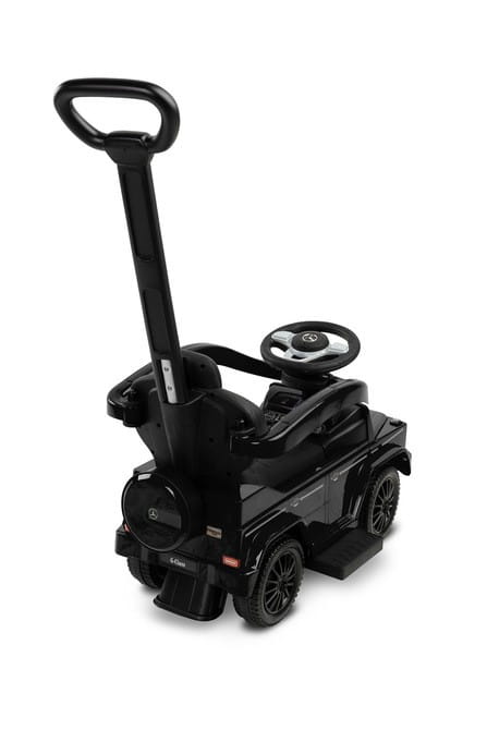 Pojazd Mercedes G 350 D od Toyz to licencjonowany jeździk, chodzik i pchacz w jednym. Swoim wyglądem odzwierciedla wygląd samochodów kultowej klasy G. Korzystając z otwieranych barierek, wysuwanych podnóżków i rączka do prowadzenia pojazd staje się pchaczem przeznaczonym dla najmłodszych pociech. Rodzic demontując poszczególne elementy może go w szybki sposób przekształcić w jeździk, którym będzie się samodzielnie poruszać dziecko. Jazdę Mercedesem urozmaici kierownica z efektami dźwiękowymi. Natomiast rodzice docenią znajdujący się pod siedziskiem schowek.