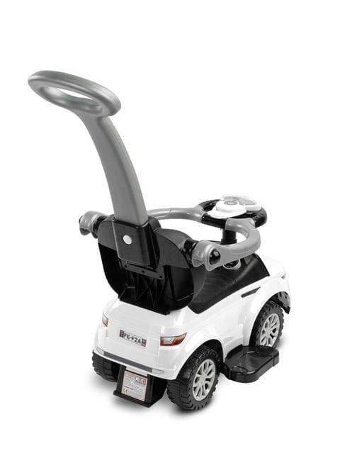 Jeździk Sport Car od Toyz to nieodzowny towarzysz spacerów. Dzięki swojej konstrukcji można łatwo go dopasować do potrzeb pociechy. Może być pchaczem, chodzikiem i typowym jeździkiem - wystarczy zdemontować odpowiednie elementy. Jeździk posiada zasilaną bateriami kierownicę ze światełkami i dźwiękami, a także bardzo przydatny schowek pod siedziskiem. Podnoszone barierki chronią przed upadkiem maluszka a także blokują możliwość skręcania przednimi kołami.