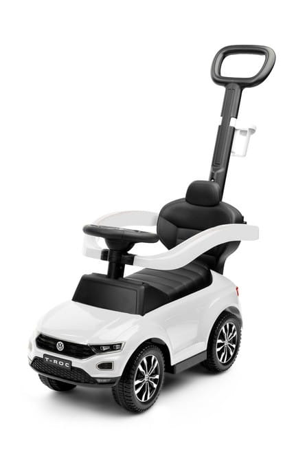 VW T-Roc od Toyz to jeździk dla dzieci z rączką do pchania. Dzięki licencji marki Volkswagen został wiernie odwzorowany zadziorny charakter prawdziwego SUVa. Jeździk w sam raz nadaje się na wspólne spacery. Dziecko może poruszać się samodzielnie, a gdy będzie zmęczone rodzic z łatwością przejmie kontrolę nad pojazdem. Wysuwane podesty umożliwiają bezpieczne oparcie nóżek, a przed wypadnięciem chroni poręcz. Pod siedziskiem ukryty jest schowek na zabawki. Na rączce znajduje się uchwyt na napoje.