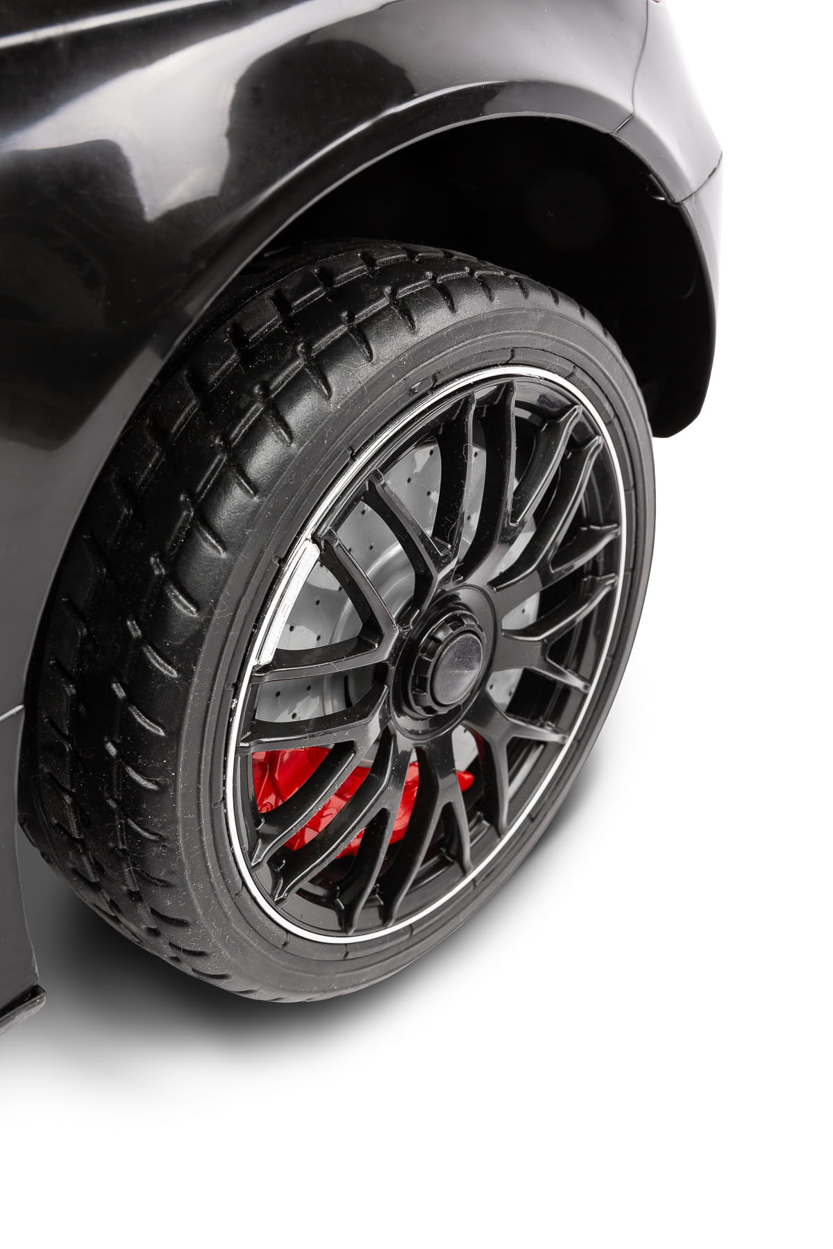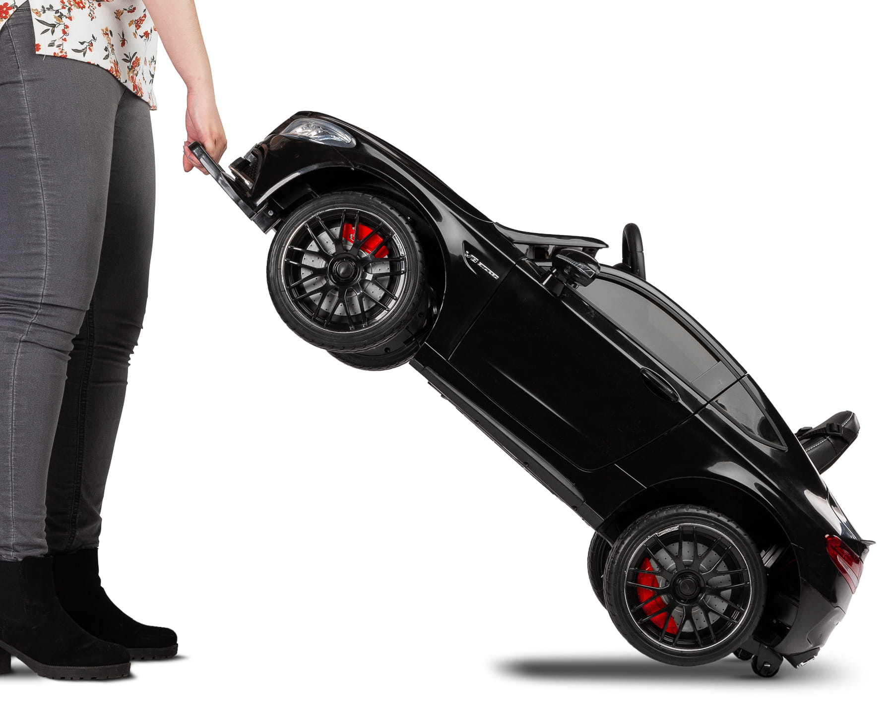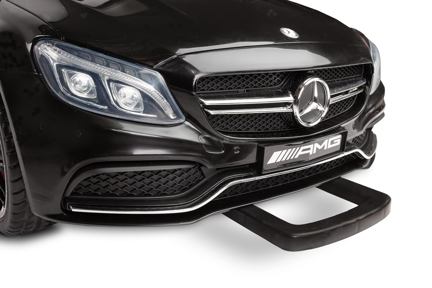 Mercedes AMG C 63 S – jak przystało na prawdziwego Mercedesa – łączy w sobie ponadczasową elegancję i sportowy charakter. Piękna linia nadwozia to tylko jeden dowód na to. Fotel kierowcy został obity stylową ekoskórą i wykończony białymi przeszyciami. Komfort jazdy podnoszą koła z pianki EVA. Zadbaliśmy również o komfort rodzica. Auto zostało wyposażone w system ułatwiający przenoszenie – wysuwany uchwyt i dodatkowe kółka. Oczywiście, jak w każdym naszym pojeździe, nie zapominamy o bezpieczeństwie zabawy. Nowością są 5-punktowe pasy bezpieczeństwa z obszyciami z ekoskóry. Ponadto auto standardowo wyposażone jest w automatyczny hamulec oraz posiada pilot zdalnego sterowania.