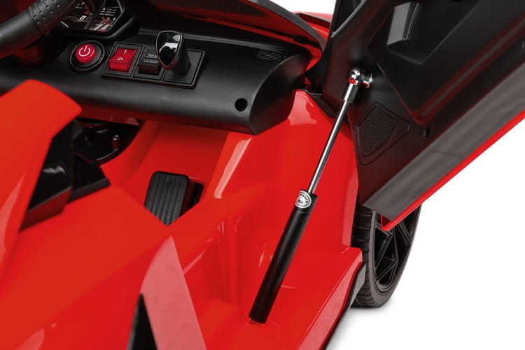 Pojazd na akumulator Toyz Lamborghini Aventador SVJ jest licencyjną wersją niezwykłego supersamochodu, który dostarczy najmłodszym niezapomnianych przeżyć. Dynamiczna linia nadwozia, charakterystyczne światła oraz otwierane do góry drzwi to tylko kilka elementów, które oddają wyjątkowość Lamborghini. Wnętrze zostało wykonane z dbałością o detale. Fotel z wysokiej jakości ekoskóry zwieńcza złote logo kultowej marki, a na kierownicy znajdują się przyciski klaksonu i przełączania melodii. Dodatkowo z tyłu kryje się schowek na zabawki.