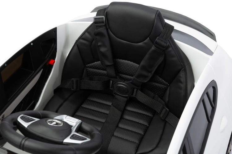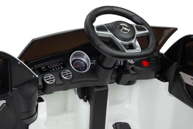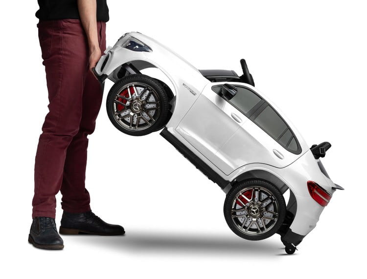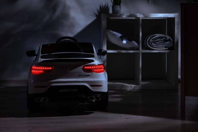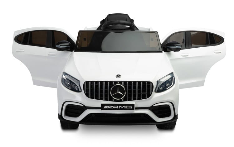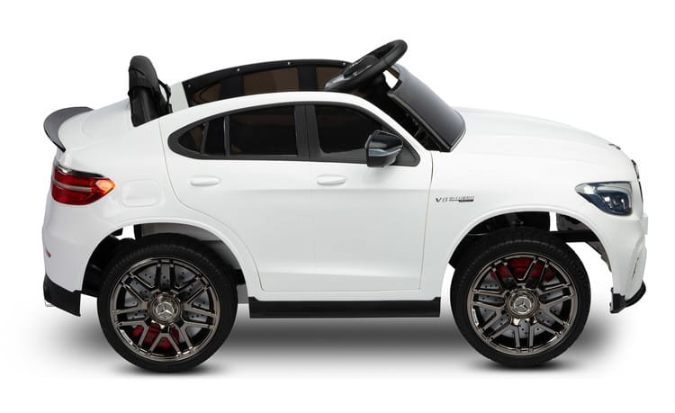 Mercedes AMG GLC 63S to licencyjny akumulatorowiec Toyz, który wzorowany jest na wyrazistym i dynamicznym SUV-ie niemieckiej marki. Charakterystyczna linia nadwozia i unikalny wygląd świateł świadczą o jego wyjątkowości. Fotel został obity ekoskórą i posiada 5-punktowe basy bezpieczeństwa z nakładkami na ramiona. Komfort jazdy zapewniają koła stworzone z wysokiej jakości pianki EVA, natomiast rodzicom spodobają się wysuwane kółka ułatwiające przenoszenie oraz pilot zdalnego sterowania. Mercedes posiada panel multimedialny z bluetooth i radiem FM oraz kierownicę z przyciskami uruchamiającymi dźwięki. Napędzany jest 4 silnikami 25 W oraz akumulatorem 12V 9Ah.