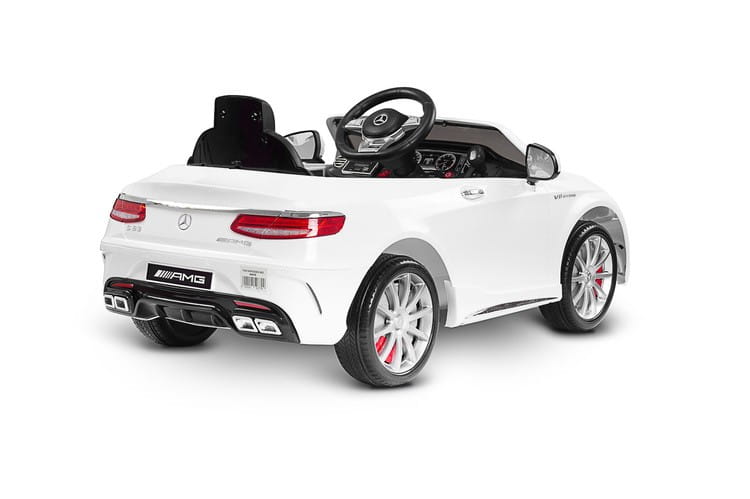 Spełnianie dziecięcych marzeń o posiadaniu własnego Mercedesa jest już możliwe Produkowany na licencji Mercedes-Benz S63 AMG od Toyz zachwyca bogatym wyposażeniem i wykonaniem z dbałością o każdy szczegół. LEDowe światła, melodie, dwie prędkości jazdy i niepowtarzalny wygląd wywołają uśmiech na twarzy każdego małego kierowcy. Bezpieczną naukę jazdy zapewnia możliwość zdalnego sterowania autem za pomocą dołączonego pilota.