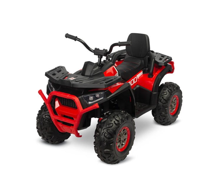 Terra od Toyz to pojazd akumulatorowy gotowy na wyprawę w teren. Quad napędzany jest 4 silnikami o mocy 45W i ma możliwość zmiany trybu napędu pomiędzy 4x2 i 4x4. Obszerne siedzisko oraz przednie i tylne amortyzatory pozwalają na wygodną jazdę. Duże koła z wysokiej jakości pianki EVA, wolny start, automatyczny hamulec oraz siedzisko z oparciem wykończone ekoskórą gwarantują bezpieczną zabawę. Przednie i tylne światła LED zapewniają widoczność pojazdu i dają więcej frajdy z jazdy o zmierzchu. Dodatkowo Terra posiada panel multimedialny z bluetooth, który umili czas spędzony na quadzie. Pojazd ma możliwość zdalnego sterowania za pomocą pilota.