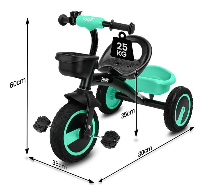 Toyz Embo to rowerek trójkołowy, który uprzyjemni maluchom czas spędzony na spacerze, a także pomoże w nabieraniu lepszej koordynacji ruchowej. Embo cechuje solidna metalowa rama i piankowe koła, których nie sposób przebić. Wyposażony jest w 2 koszyki, które umożliwiają przewożenie zabawek lub innych przydatnych na spacerze akcesoriów