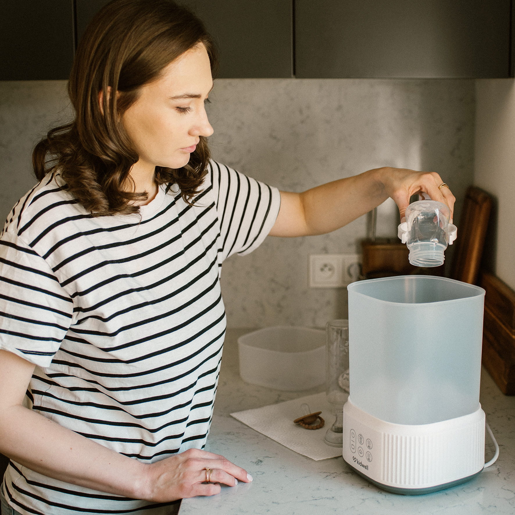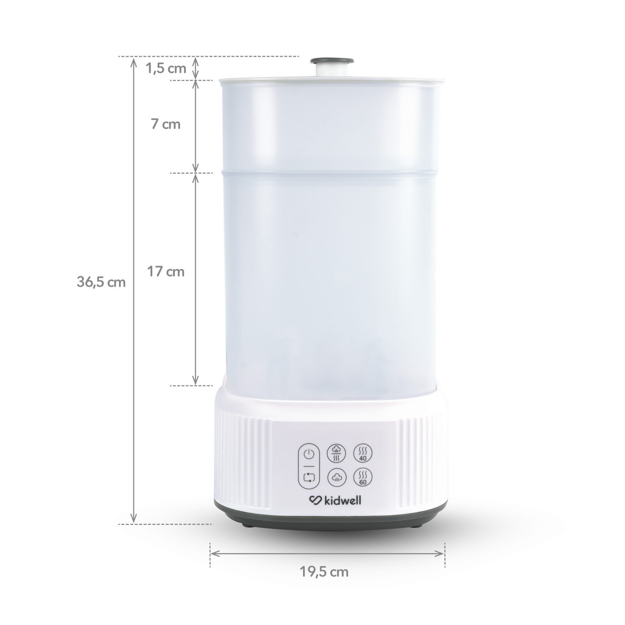 Kidwell Puro jest urządzeniem multifunkcyjnym - może być używany na różne sposoby - do procesu sterylizacji i suszenia, samej sterylizacji lub samego suszenia. Może również służyć jako miejsce do przechowywania butelek i akcesoriów.