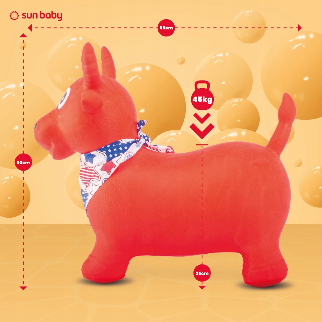 Sun Baby - gumowy skoczek dla dzieci BYCZEK 55cm CZERWONY z bandaną