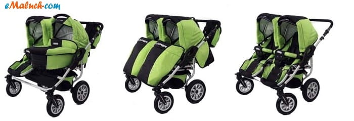 - wpięcie gondolek, spacerówek oraz fotelików samochodowych, które montować możemy niezależnie, zarówno przodem jak i tyłem do kierunku jazdy