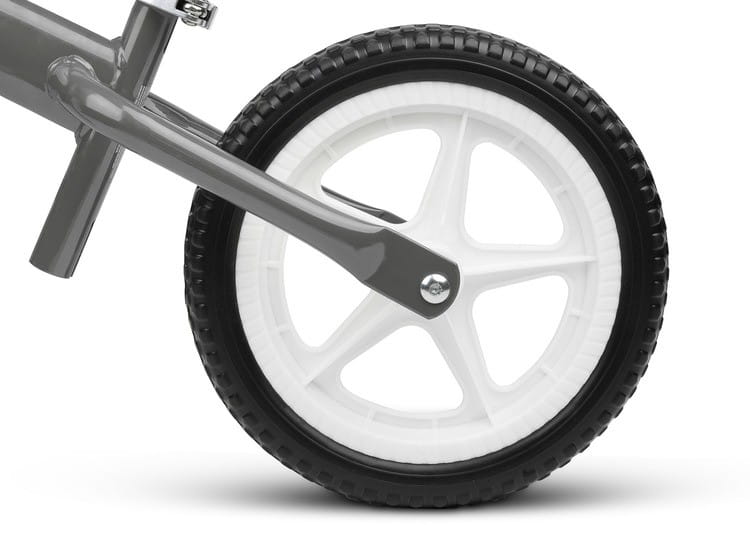 - wysoki komfort jazdy nawet po nierównej powierzchni zapewniany przez gumowe, wypełnione pianką koła rowerka biegowego