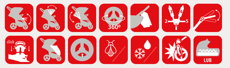 - w spacerówce 5-punktowe pasy bezpieczeństwa, miękkie ochraniacze na ramiona i miękka wkładka siedziska