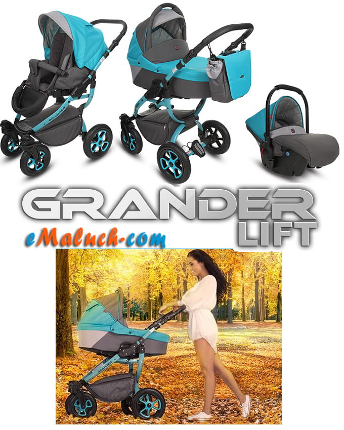 Nowy Grander to nowa rama, nowy wzór gondoli, nowe rozwiązania ułatwiające użytkowanie wózka. Komfort i wygoda dla dziecka oraz rodzica. Dwa podstawowe kolory tapicerki ożywiliśmy akcentem kontrastowej tkaniny – przyjemny i lekki efekt przypadnie do gustu nawet najbardziej wybrednym estetom! Model występuje w tradycyjnej materiałowej tapicerce i w kolekcji Eko-Skóra.