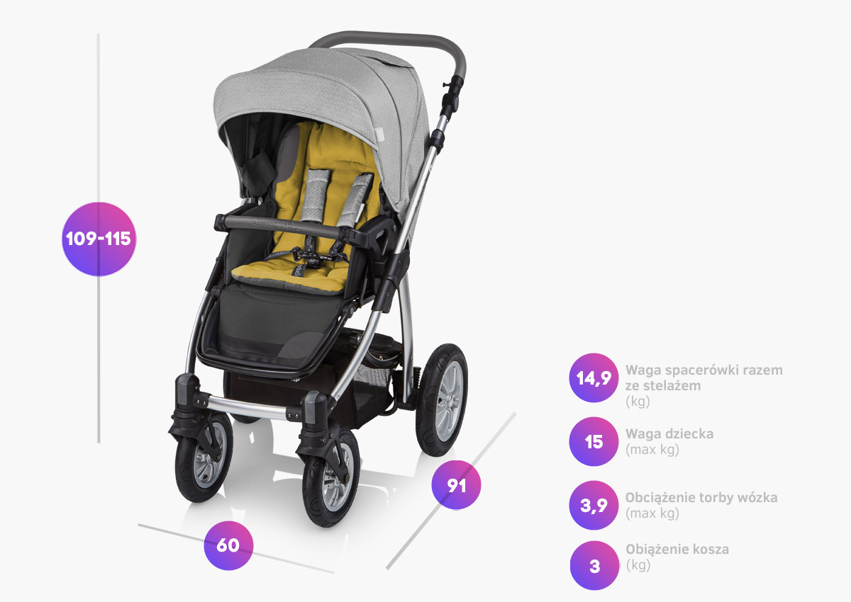 Jest to wózek lekki,aluminiowy, który posiada przekładane siedzisko spacerówki skierowane przodem lub tyłem do kierunku jazdy z możliwością rozłożenia do pozycji leżącej.