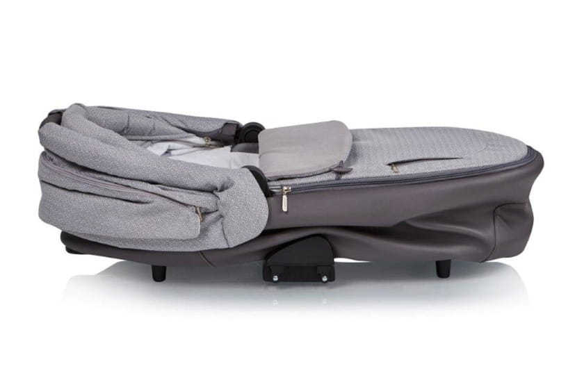 Wentylowana gondola z podnoszonym oparciem oraz wygodnym systemem odpinania i zapinania na stelażu