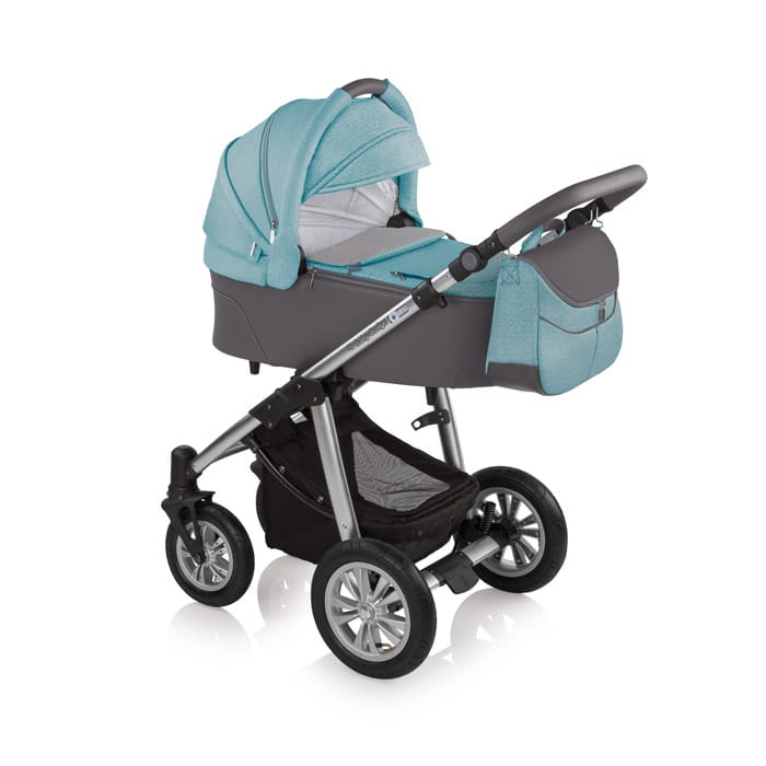 W komplecie pokrowiec na nóżki, torba z przewijakiem, folia przeciwdeszczowa na gondolę i spacerówkę