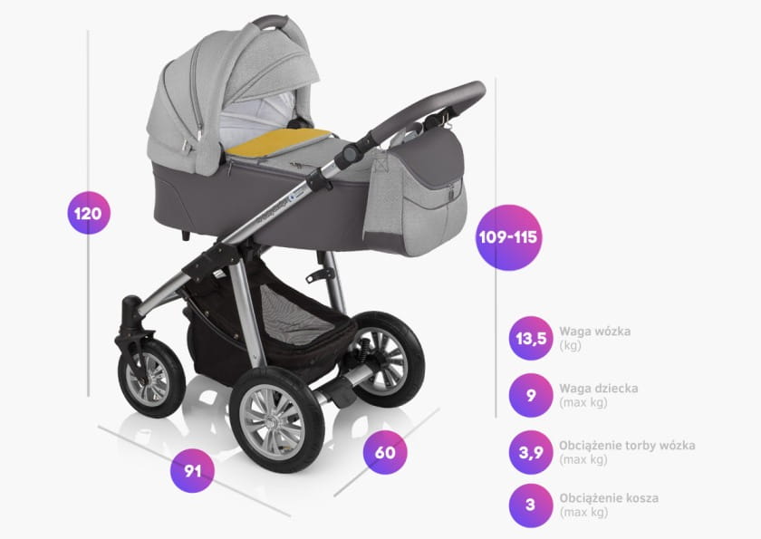 Wózek głęboko-spacerowy DOTTY jest najnowszą wersją wózka Lupo.
